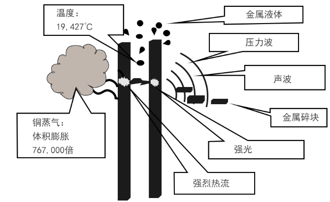 圖1-2短路時在開關產生的電弧(歷史圖片)